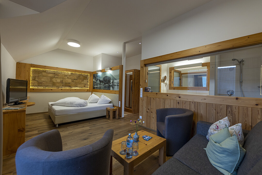 In unserem 400 Jahre alten Stammhaus befindet sich ein Teil unserer Zimmer, die den Charakter des alten Gebäudes widerspiegeln. Im vorderen Teil des Hauses findet man unteranderem unsere Hotelappartements, eine Brücke als Übergang verbindet die beiden Gebäude.